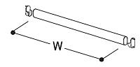 「W」はパイプの実際の長さです。両端の受け金具(ブラケット)部分は含みません。